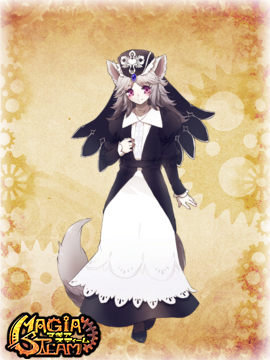 銀色の毛並みがとても綺麗なオオカミのマザリモノ。いつか完璧なノウブルの見た目になれると信じて日々努力中。普段は耳と尻尾が出ていることが多い。